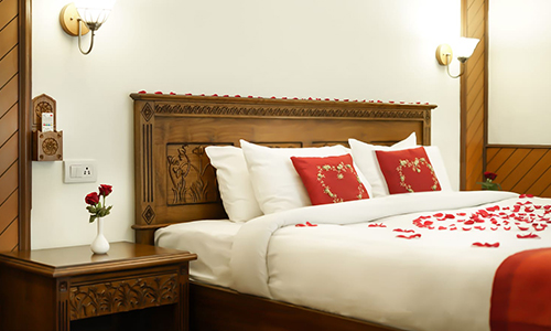 Elegantly appointed spacious room with an exotic view built with plush teak wood flooring. Queen size beds with soft pillows, mattresses and duvets, and 26" colour LED television with more than 150 channels. Separate living room with 21" colour television. Attached bath. Spacious wardrobes, with telephone for internal dialling. Complimentary Buffet Breakfast and Dinner at Pine & Petals - Multi Cuisine Restaurant. Digital safety lockers with WIFI internet.